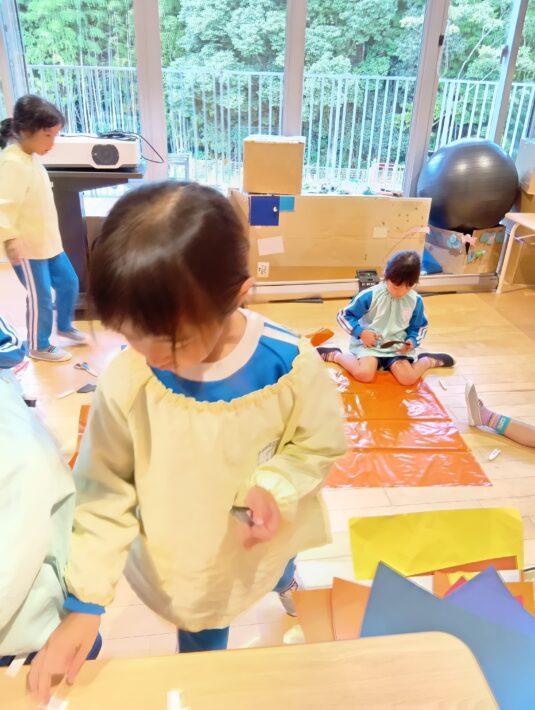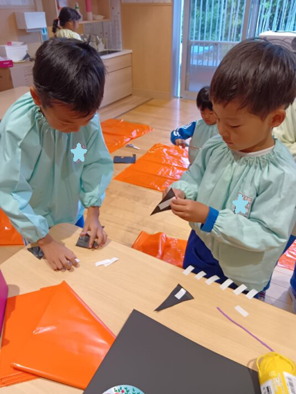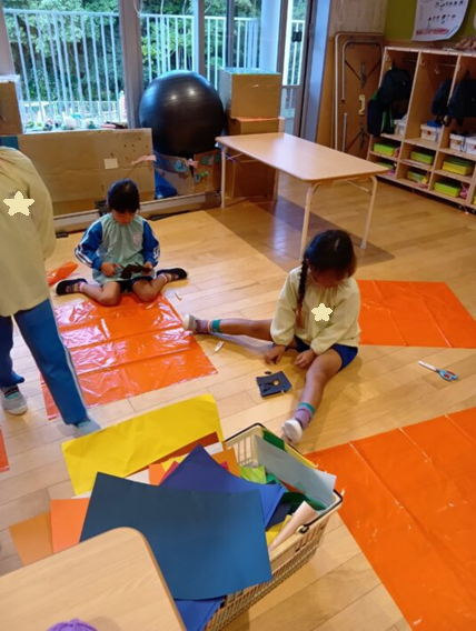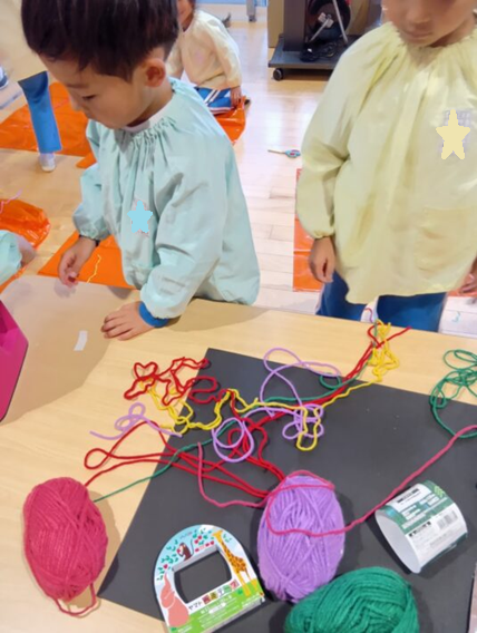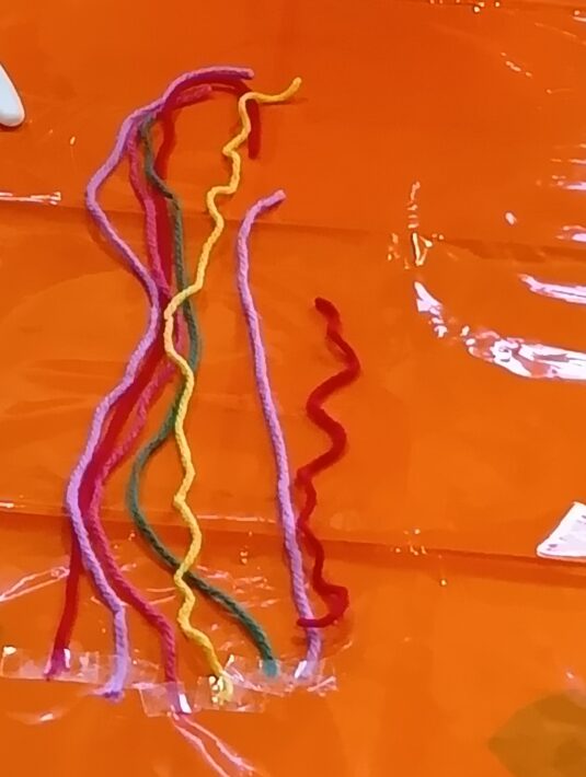 今回はカラポリと毛糸、色画用紙を使いました。