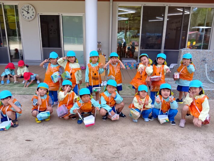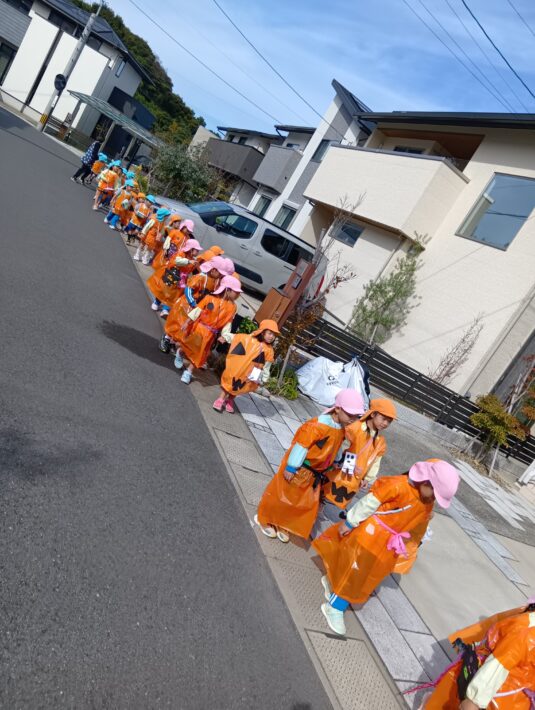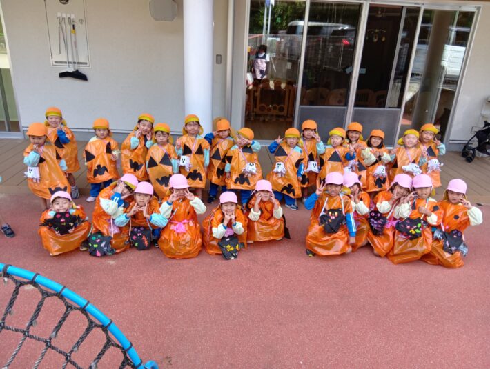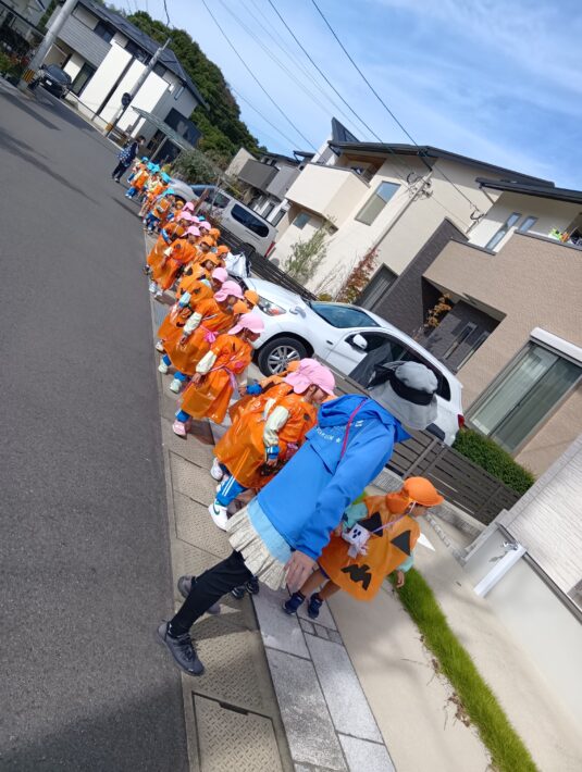 2025年10月30日 さくらぐみ・ひまわりぐみ・すずらんぐみ ハロウィン散歩 以上児 いいお天気に恵まれ、自分たちで作った衣装を着てお散歩に出かけることが出来ました。 出発前にみんなでお写真📷 さー!出発!! エテルネへ さくらぐみさんが、すずらんさんを引っ張てくれます。( *´艸`) 可愛い衣装を着てみんな満足°˖✧◝(⁰▿⁰)◜✧˖° 園に帰ると園長先生からお菓子のプレゼント🎁 ハロウィンの手作りバック・衣装を持ち帰るので お家でも是非ハロウィンパーティーなどなど…してみてください。ヽ(^o^)丿 フォトアルバムにも写真を載せていますのでご覧ください。 << 前の記事へ 一覧へ