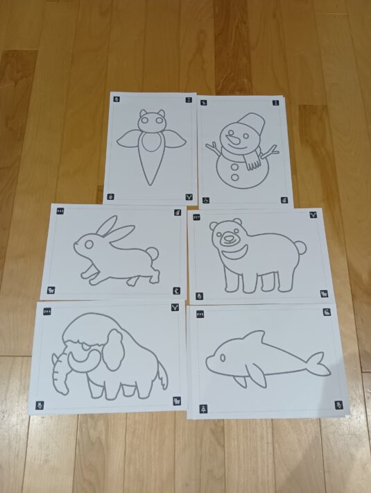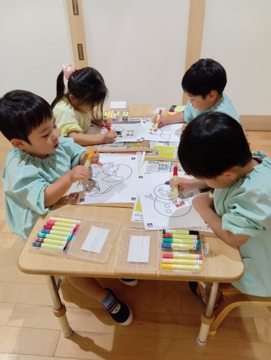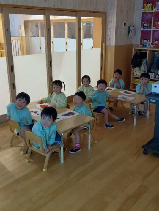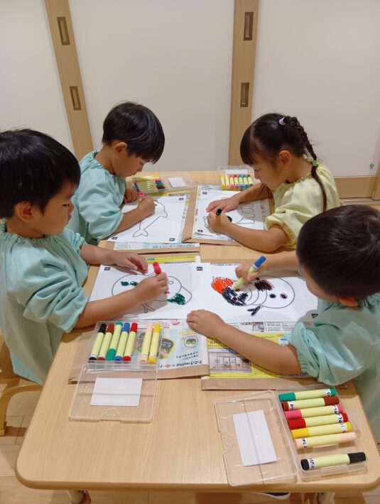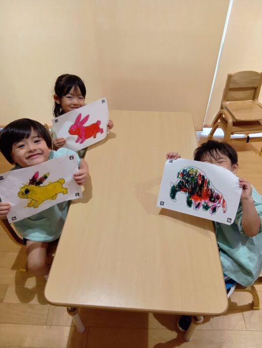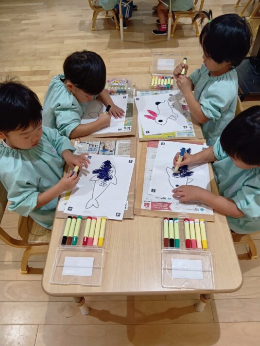 くまポンに代わって、それぞれ好きな生き物を選んで色塗りをしました。
