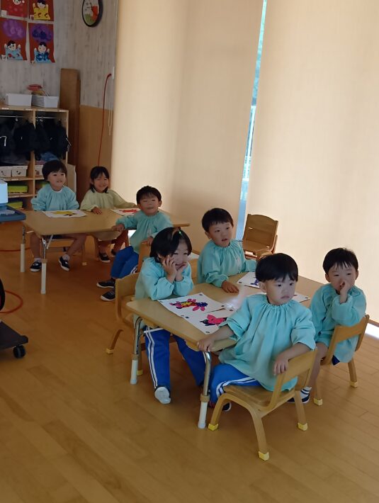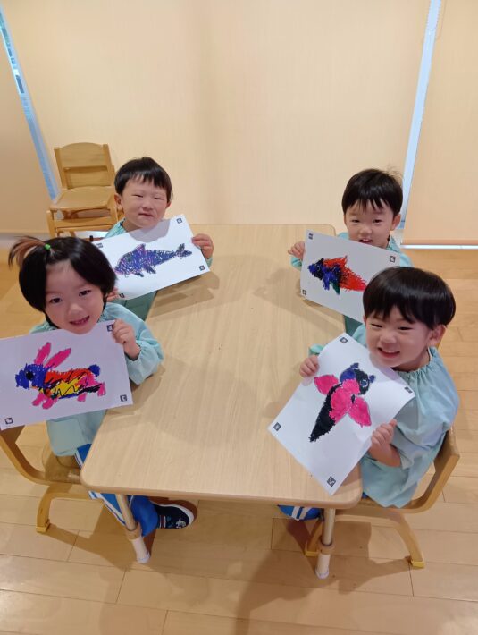 同じところを塗ると「穴が開いちゃうー」と、難しい場面もありましたが、頑張って塗り、素敵な作品が出来ました☻