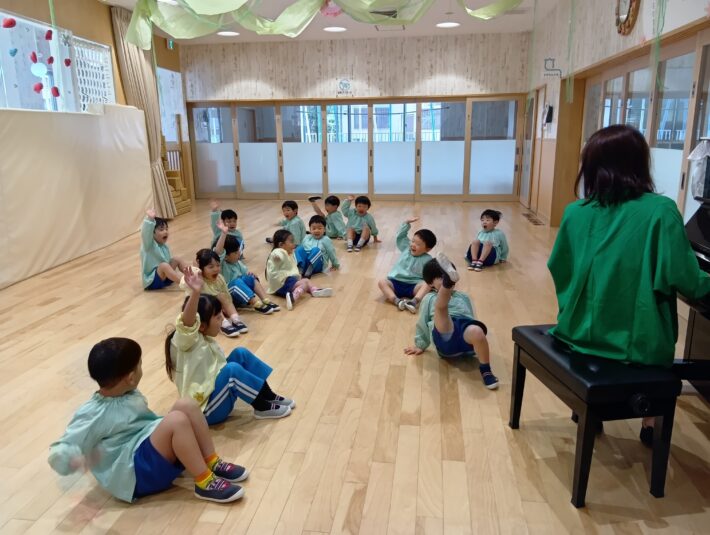 2026年03月30日 すずらんぐみ🌼3月 音楽遊び教室 以上児 すずらん組さん最後の音楽遊び教室に参加しました! 果物の名前を言いながらリズムをとったり、 蝶に変身してお散歩したり、 お返事もばっちりです! 二人組になり、ピアノの音楽に合わせて動いたり、リズムを取ったりもしました♪ ひまわりさんでの音楽遊び教室も楽しみだね♪ << 前の記事へ 一覧へ