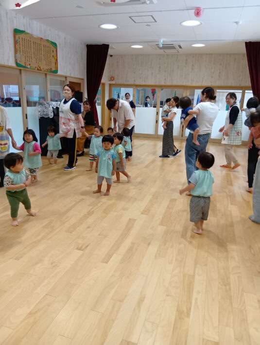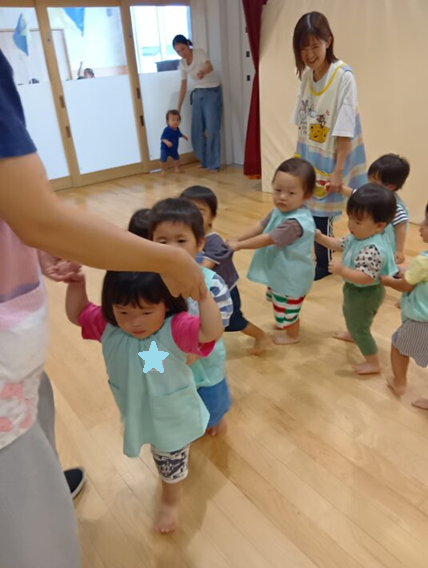 2025年10月07日 ちゅうりっぷぐみ🌷音楽遊び教室 未満児 今日は、つくしぐみさんが離乳食試食会だったので、お父さんお母さんとの参加でしたが、 動じず、いつも通りのちゅうりっぷぐみさんでしたよ😊💕 みんなでピアノに合わせてお散歩にレッツゴー!! ゆっくり歩いたり、早く歩いたりと、よく音楽を聴いてお散歩出来ていました! 次は、秋の季節の曲を歌いました! 「大きな栗の木の下で」 「バスにのって」 先生の膝に乗り、楽しそうなちゅうりっぷぐみさん(^▽^)/ 最後はみんなで電車になりました! みんな繋がるのが上手でした💕 10月の音楽遊び教室も楽しみだね✨ << 前の記事へ 一覧へ 次の記事へ >>