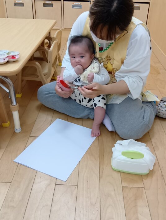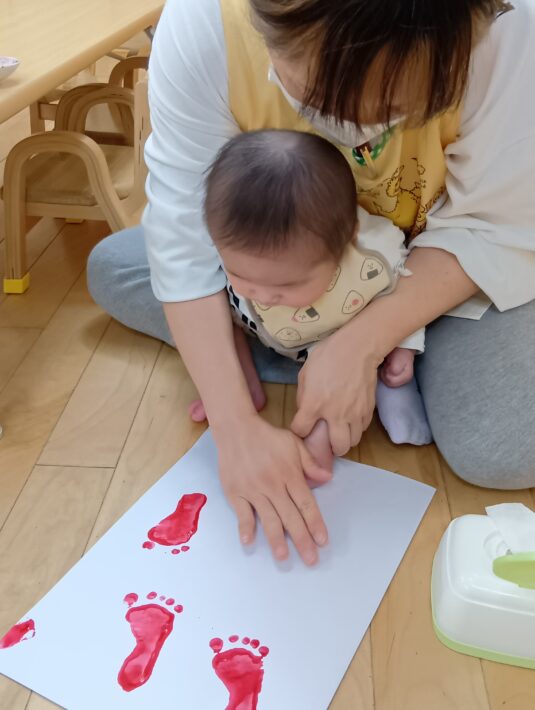 2026年04月14日 つくし組🍼お弁当の日 未満児 最近雨の日が続いているので、製作をしました😊 手形と足形とりです! 絵の具を手に塗られている時は、くすぐったい様子でなかなかてを広げてくれませんでした(笑) 広げたタイミングを見計らって、ペタ!!! 足形は無抵抗でさせてくれました♪ こんな表情をしていたんですね(笑) こども園に来て何もかもが初めてのお友だち。 お弁当デビューもしましたよ💓 製作は出来上がるのを楽しみにしていてくださいね🥰 << 前の記事へ 一覧へ 次の記事へ >>