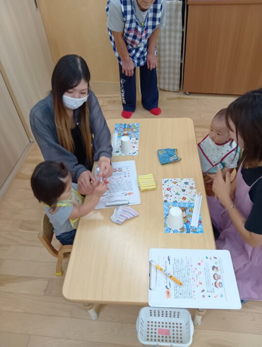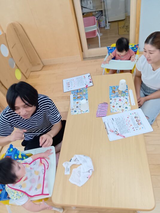 離乳食を試食してもらったり、給食室の先生から離乳食についてのお話や質問コーナーもあり、楽しいひと時でした🥰