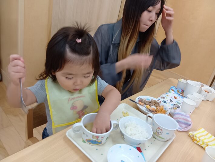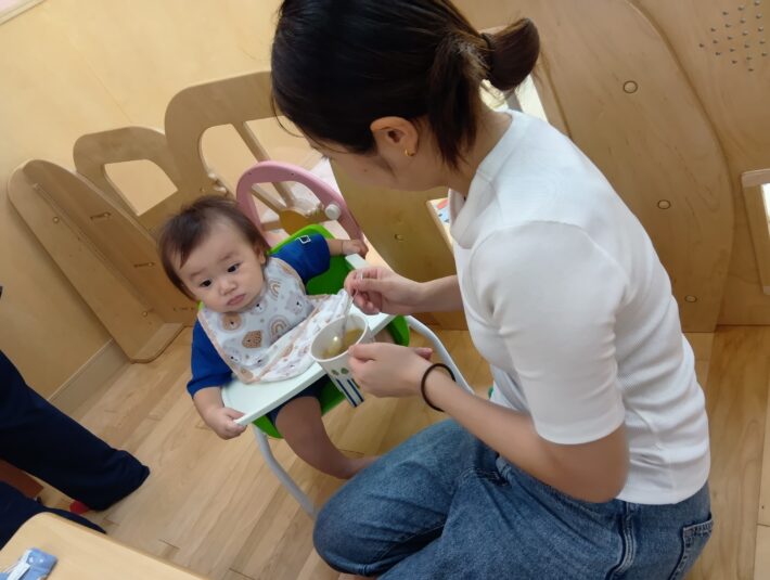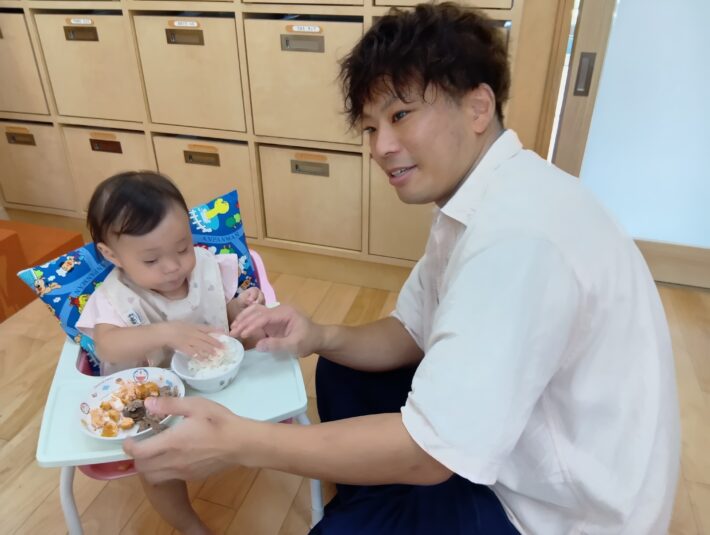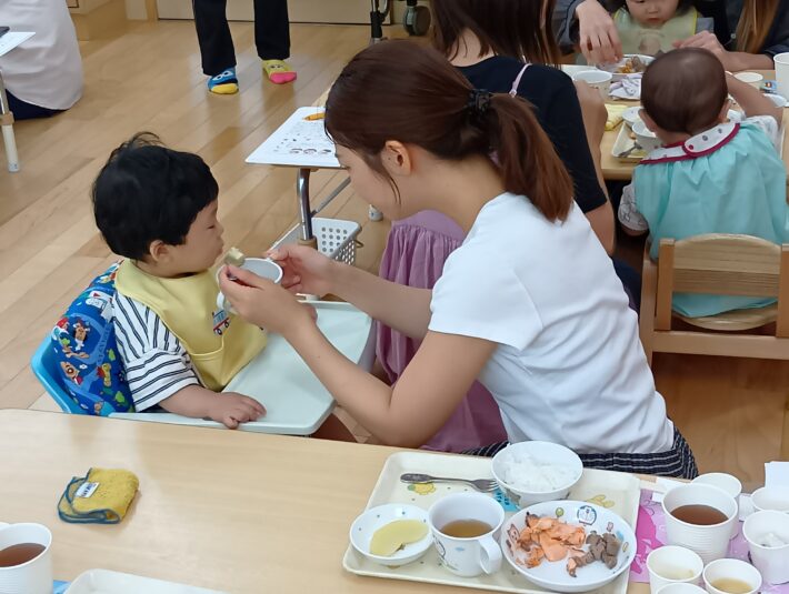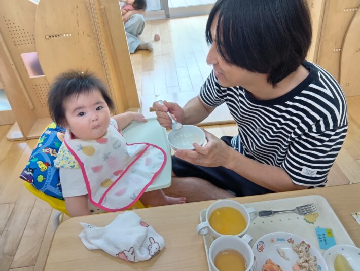いつもは先生達と食べる離乳食も、大好きなお父さん・お母さんに食べさせてもらい