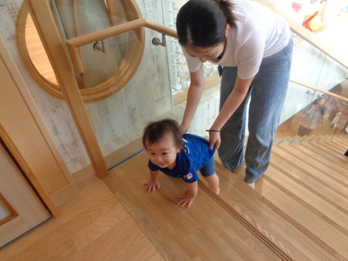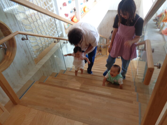 普段頑張っている階段上りを見てもらい、音楽遊び教室へ🎵