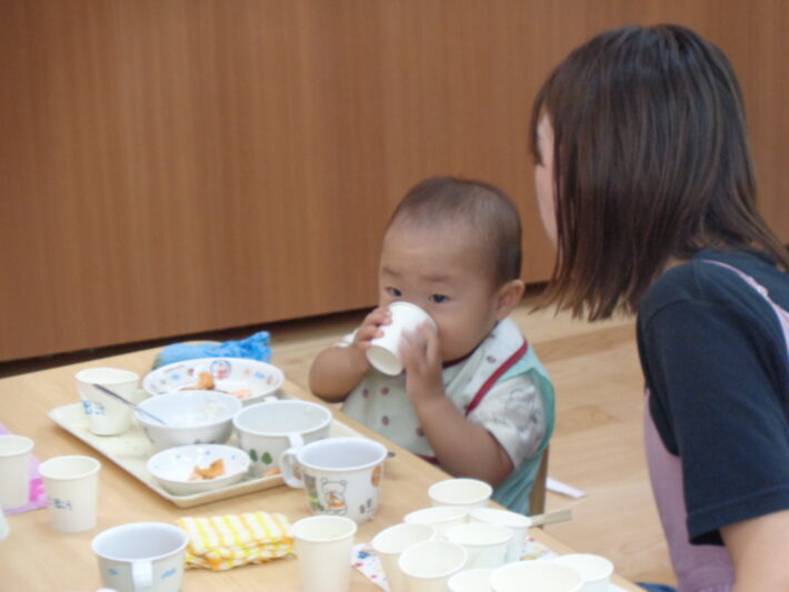 青い鳥こども園では初めての取り組みになる、0歳児クラスの離乳食試食会が行われました!