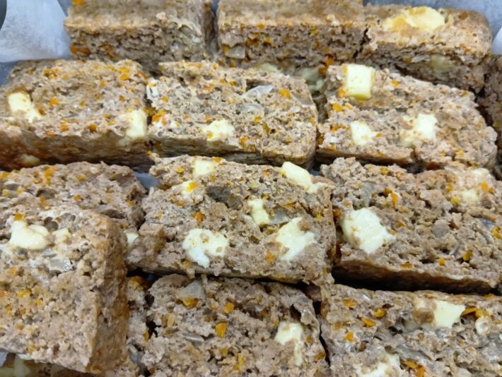 合挽肉、たまねぎ、にんじん、とうふ、チーズがたっぷり入ったミートローフ!!!