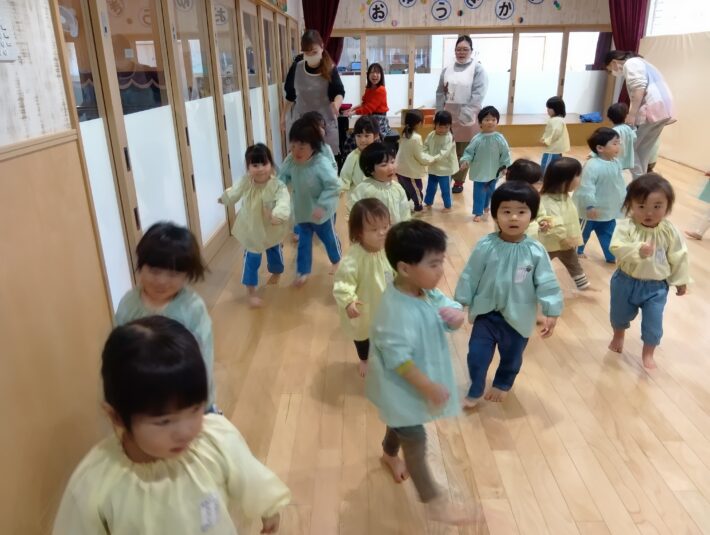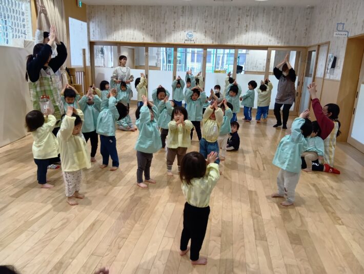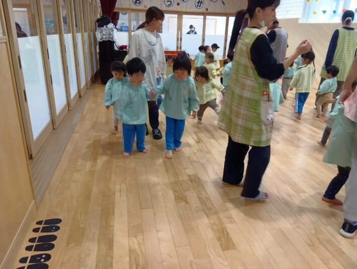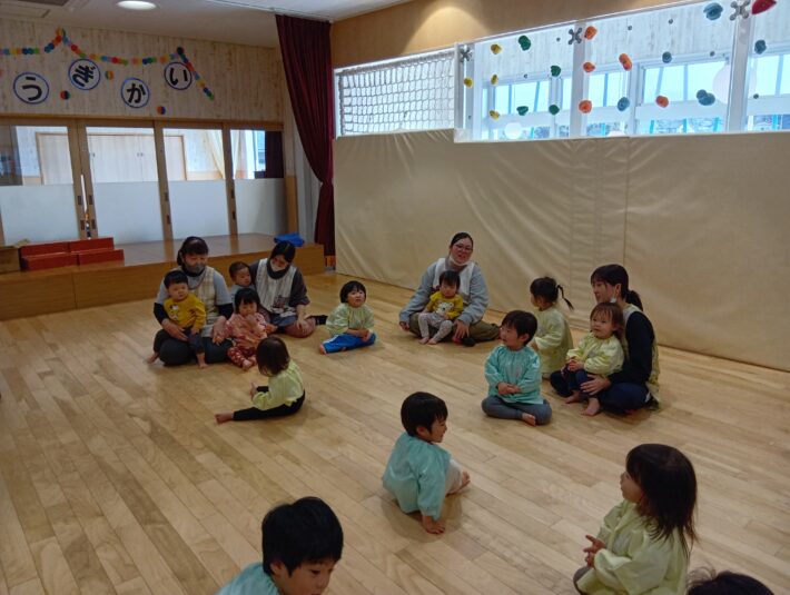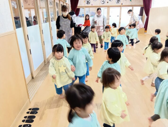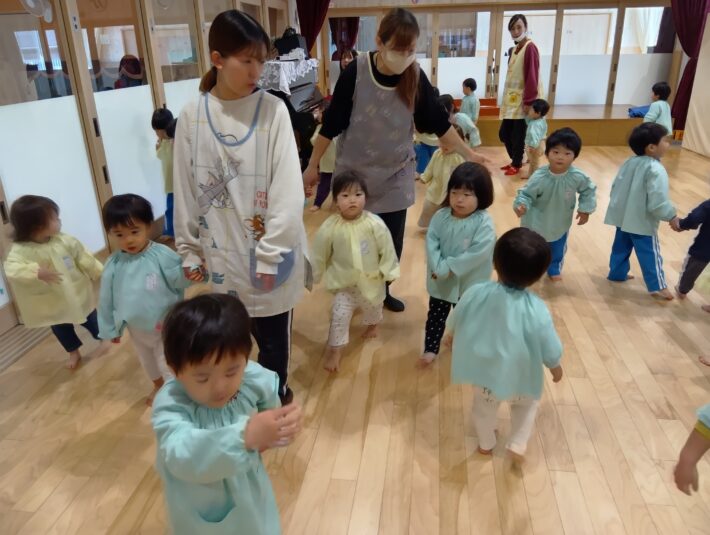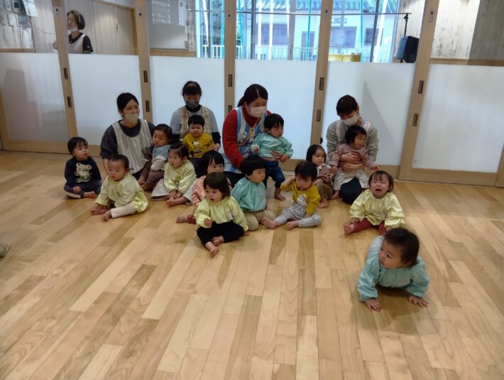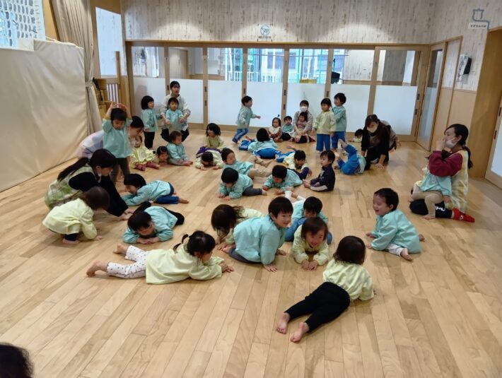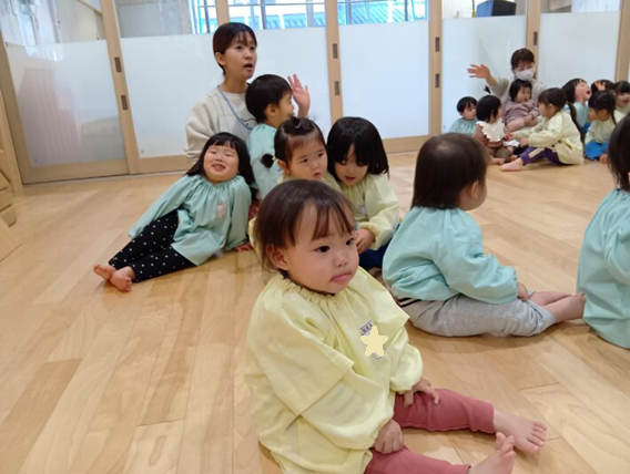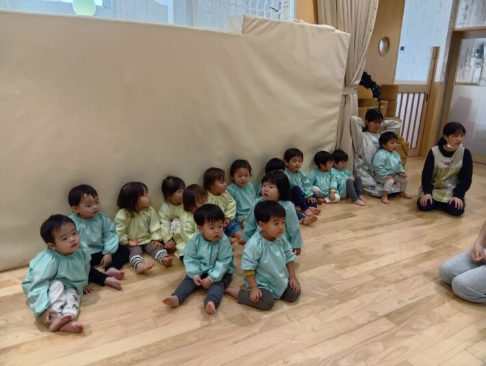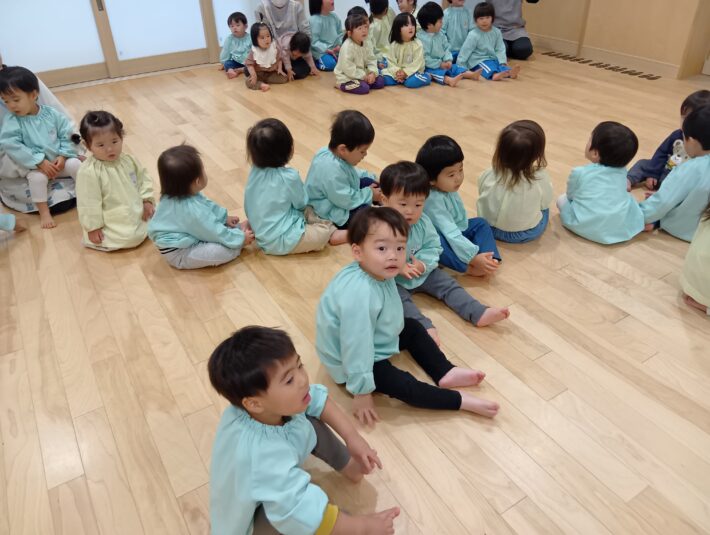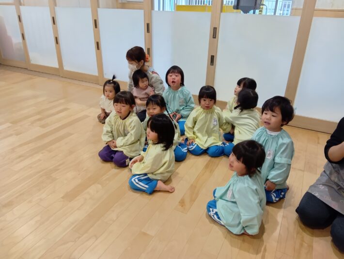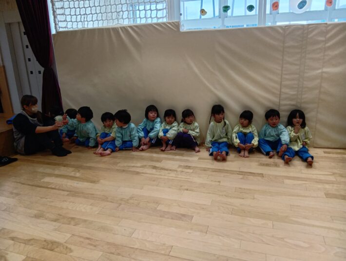 先生が来る前にお遊戯室に集まることができ、待っている間の姿に1年の成長を感じるものがありました😊