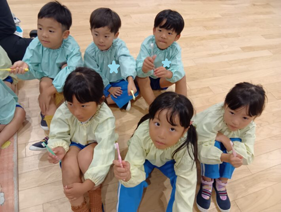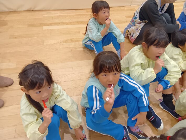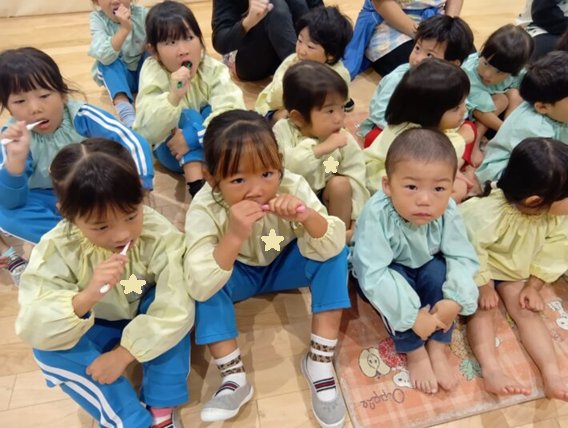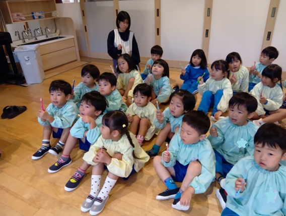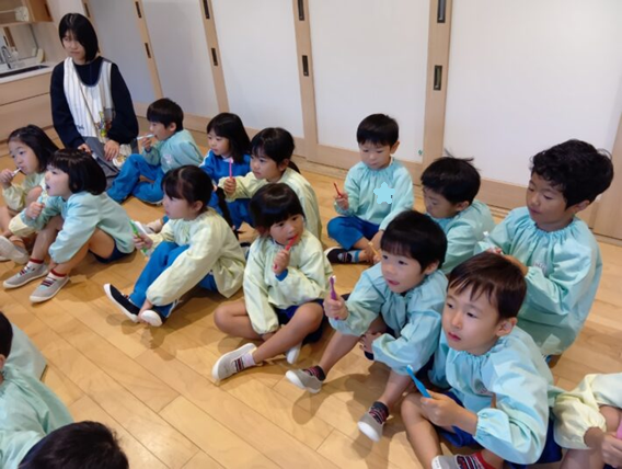 2025年11月10日 歯ブラシブラッシング指導 2・3・4・5歳児 その他 歯科検診がありました。 その後、2階でブラッシング指導をしてもらいました。 紙芝居やエプロンシアターで 歯ブラシ指導も、「こんにちは」「こんばんは」 たんぽぽぐみさんもこんなに真剣にお話を聞いてくれています!! きっと、歯ブラシ上手になれそうです。 最後は、パパやママに仕上げのブラッシングをしてもらっておしまいです。(#^.^#) さくらぐみさん、ひまわりぐみさん、すずらんぐみさんも お家でちゃんとできるかな~~°˖✧◝(⁰▿⁰)◜✧˖° << 前の記事へ 一覧へ 次の記事へ >>