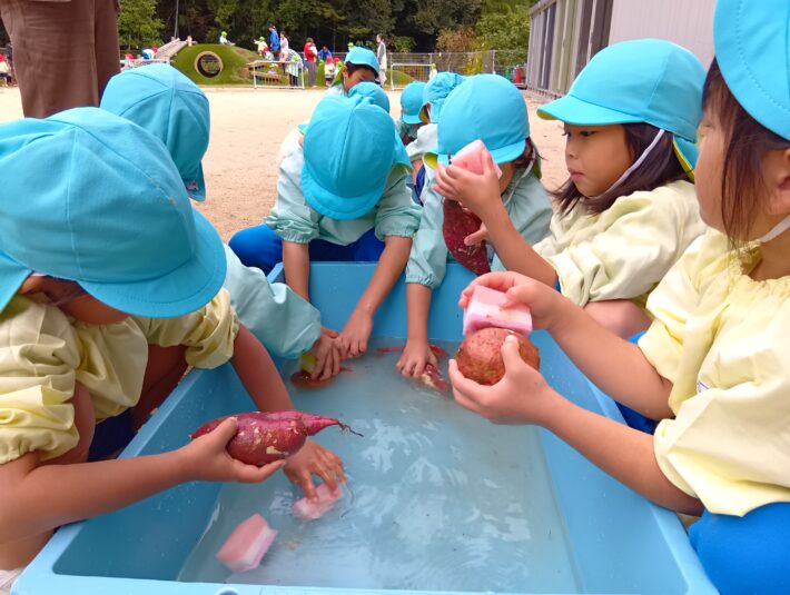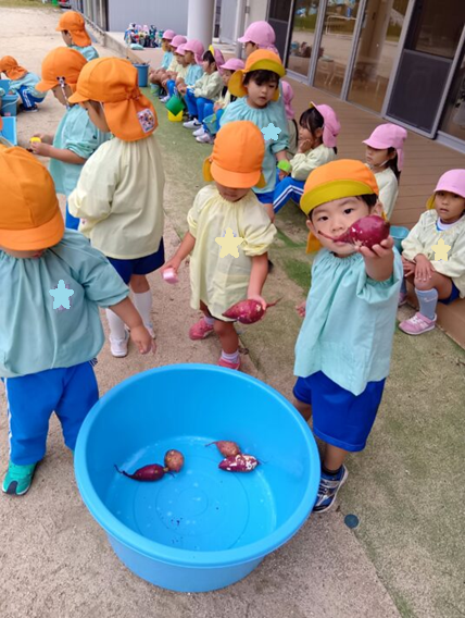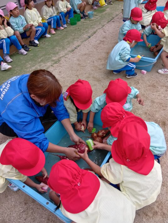 お手伝いに意欲的なさくらさんのおかげで、無事みんな芋を掘って洗うことができました(^▽^)/