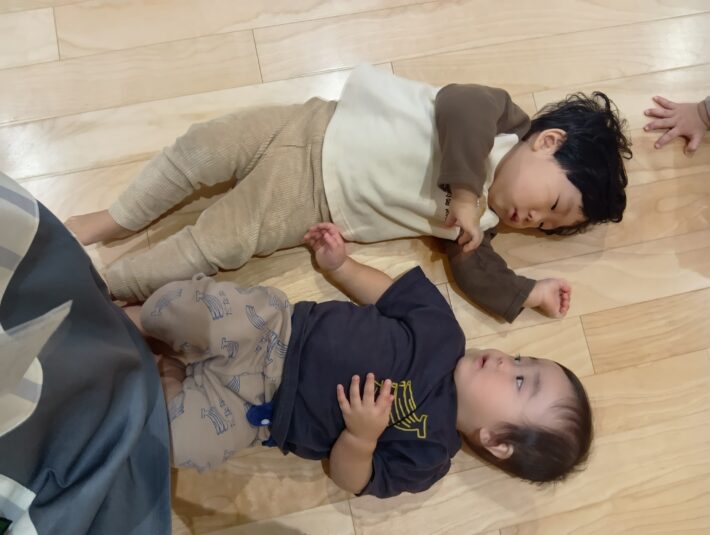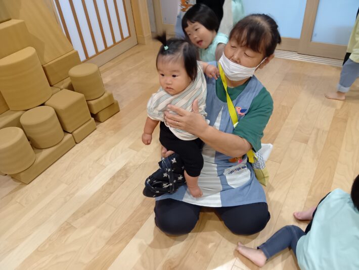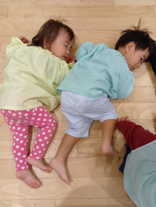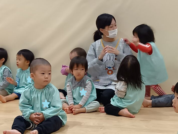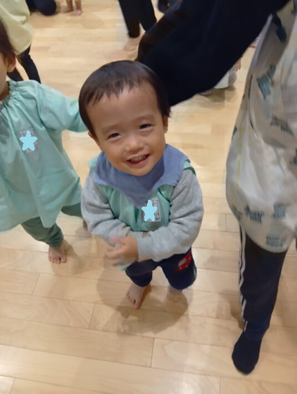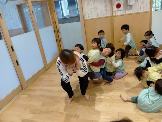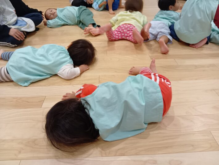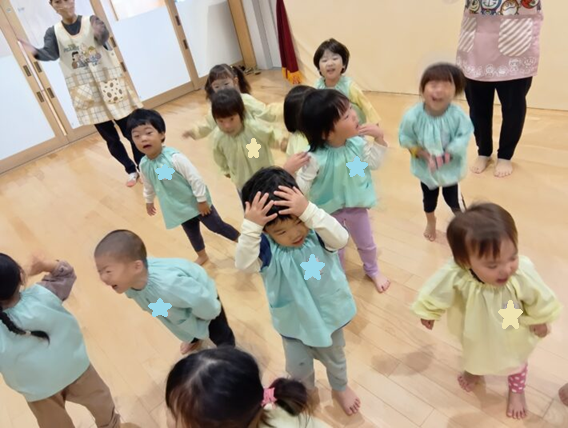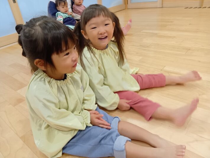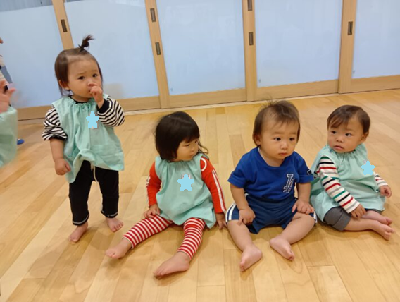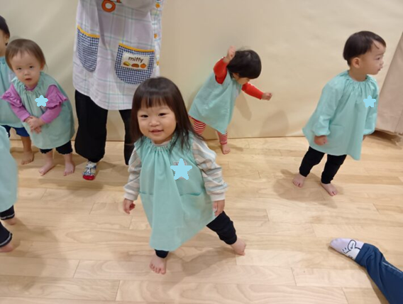 音楽教室でも秋の歌をうたったり、リズムに合わせて歩きながらどんぐりを拾う真似をして楽しんでいましたよ♪