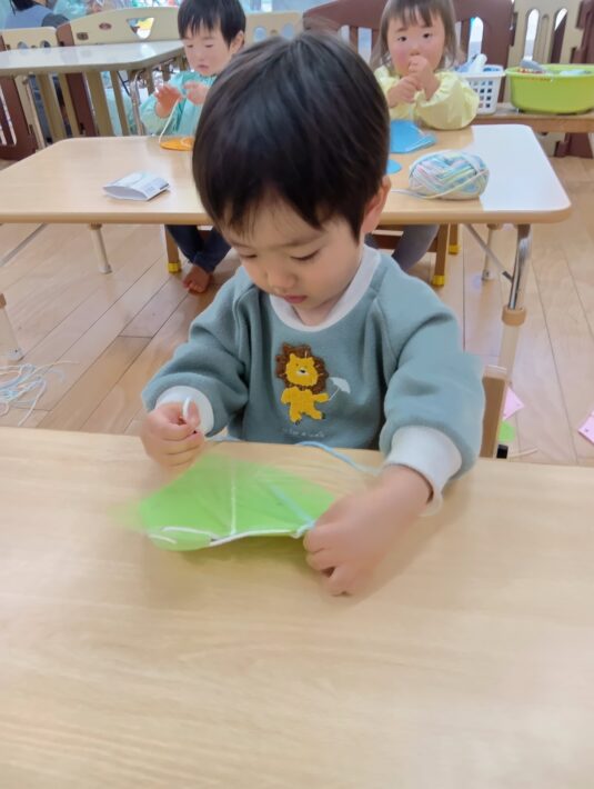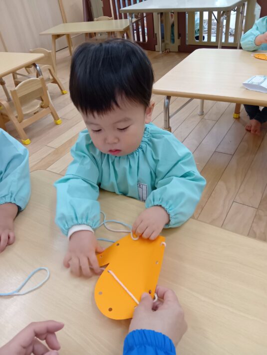 2026年02月16日 2月制作〜ちゅうりっぷ組🌷〜 未満児 2月の制作は手袋を作りました!! 初めてヒモ通しに挑戦しました\(^o^)/ 最初は難しそうで、先生と一緒に通しました! コツを掴むと1人でスムーズに通せる子もいて吸収が早い、ちゅうりっぷ組さんです(*^^*) 可愛い手袋が出来ました☺ << 前の記事へ 一覧へ