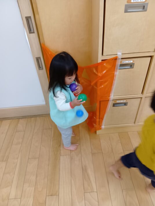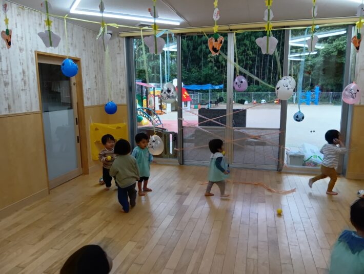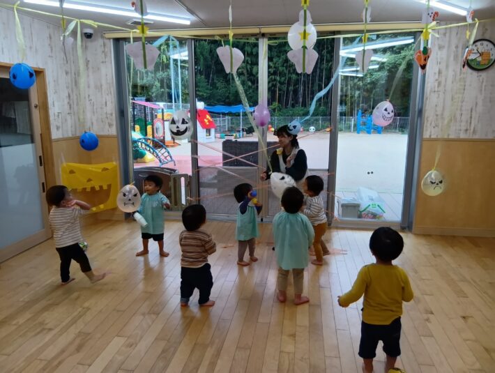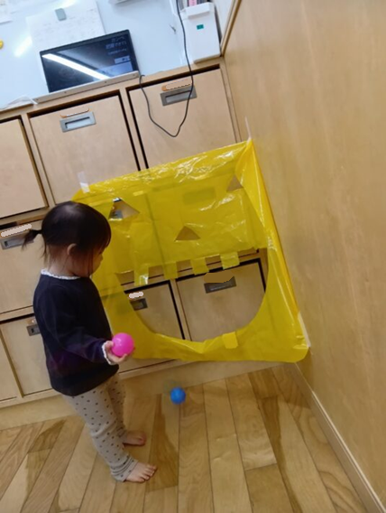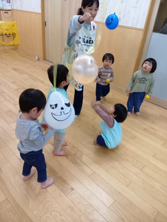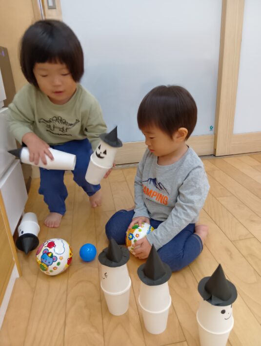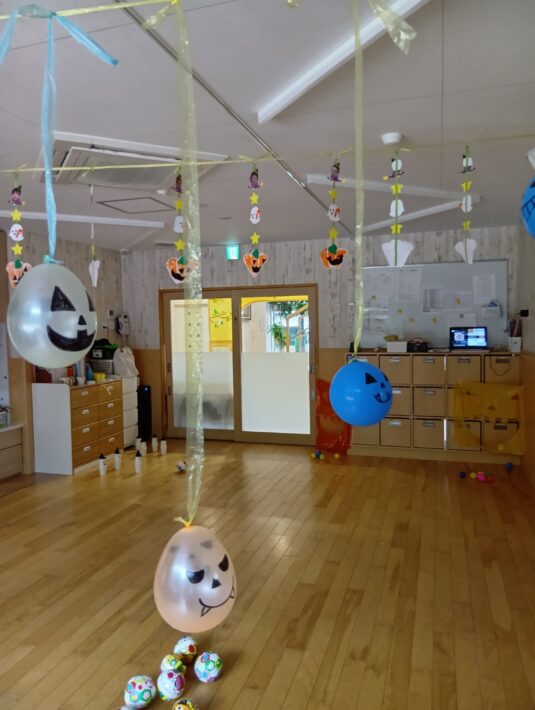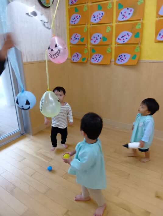 部屋にはオバケの風船やボーリング、玉入れなど色んな遊び場があり子どもたちは大興奮でした♪